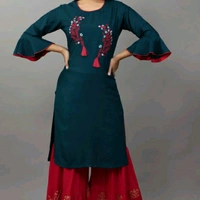 Women's Embroidered Rayon Kurta Set with Sharara Kurta Fabric: Rayon Bottomwear Fabric: Rayon Fabric: Rayon Sleeve Length: Three-Quarter Sleeves Set Type: Kurta With Bottomwear Bottom Type: Sharara Pattern: Embroidered Multipack: Single Sizes: XL, L, XXL, MDispatch: 2-3 Days